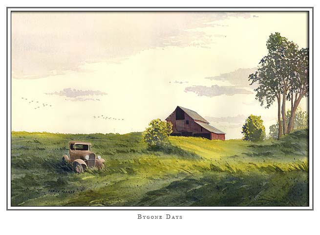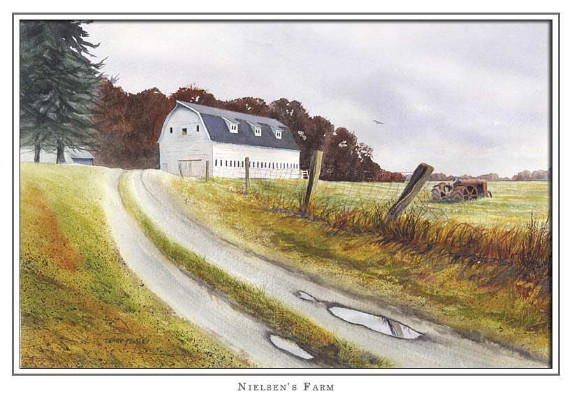 My farm scene paintings reflect many years of enjoyment photographing Oregon's history, long before I ever dreamed of painting. Once I started watercolors in 1996, this library of pictures has served invaluable since many of the barns, trucks, and machinery are gone.