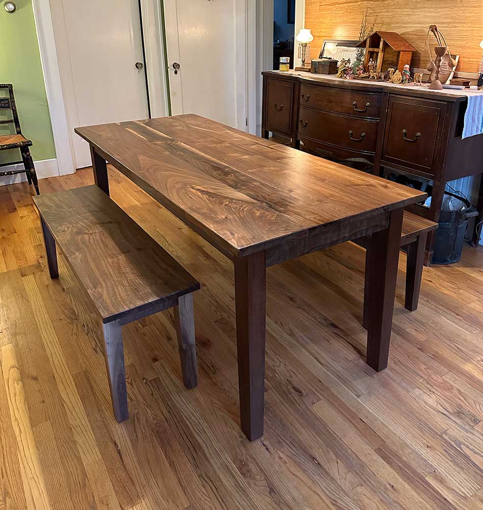 Black Walnut Dining Table and Benches |
