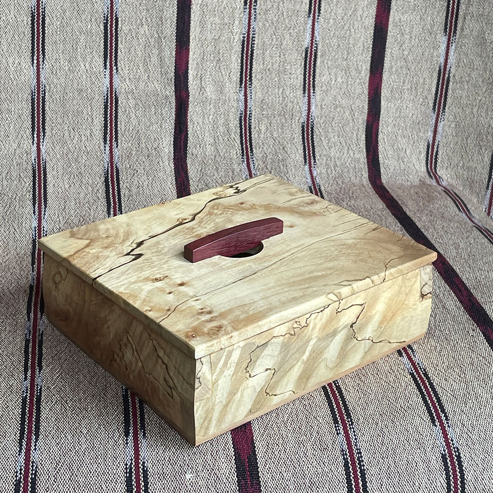 Spalted maple box with purple heart handle |